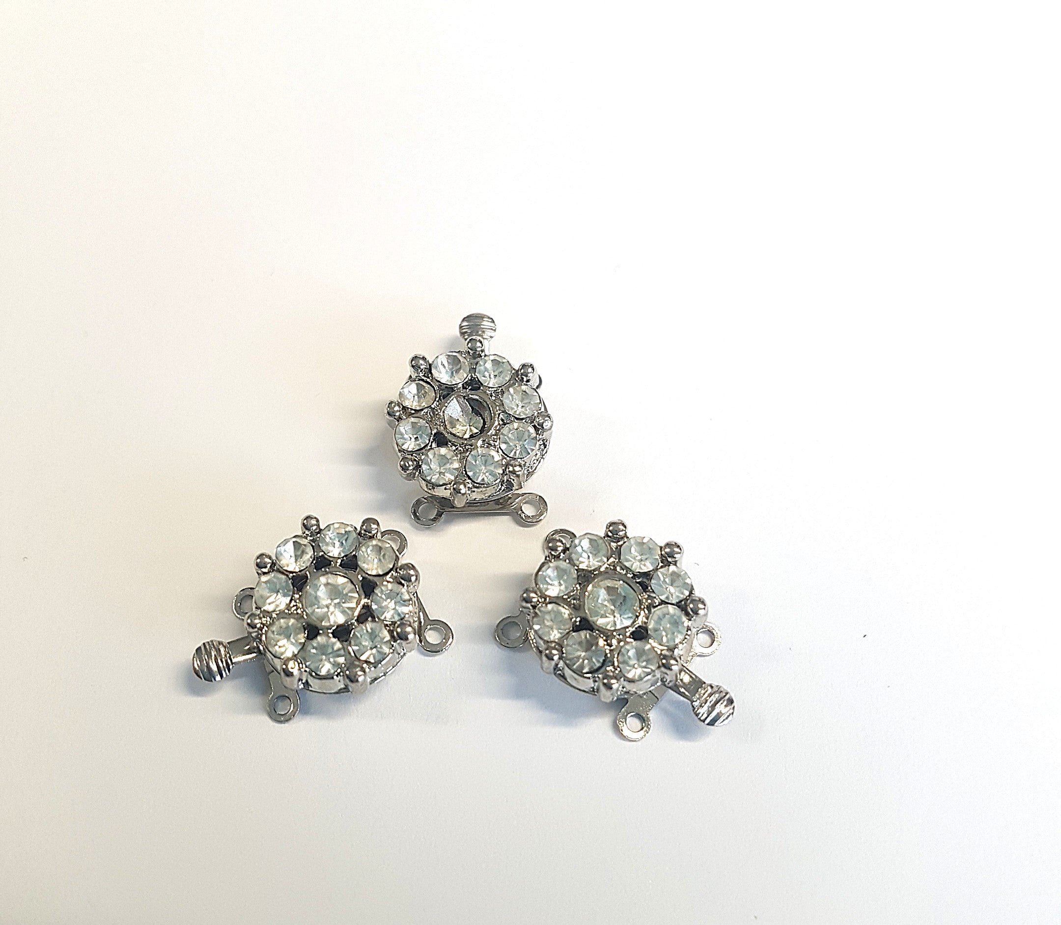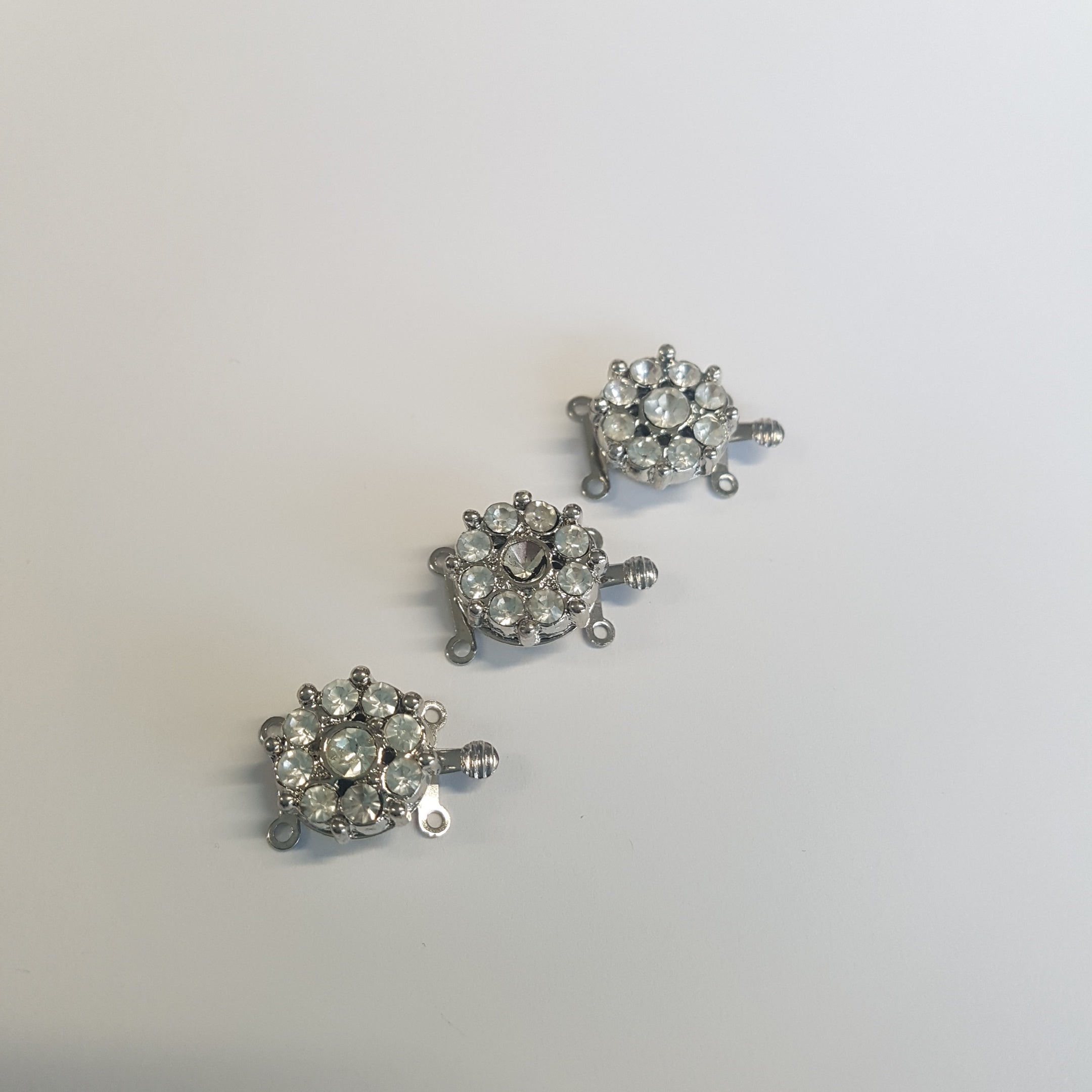 Fermoir Clip argenté - motif fleur avec strasse (1 pce)