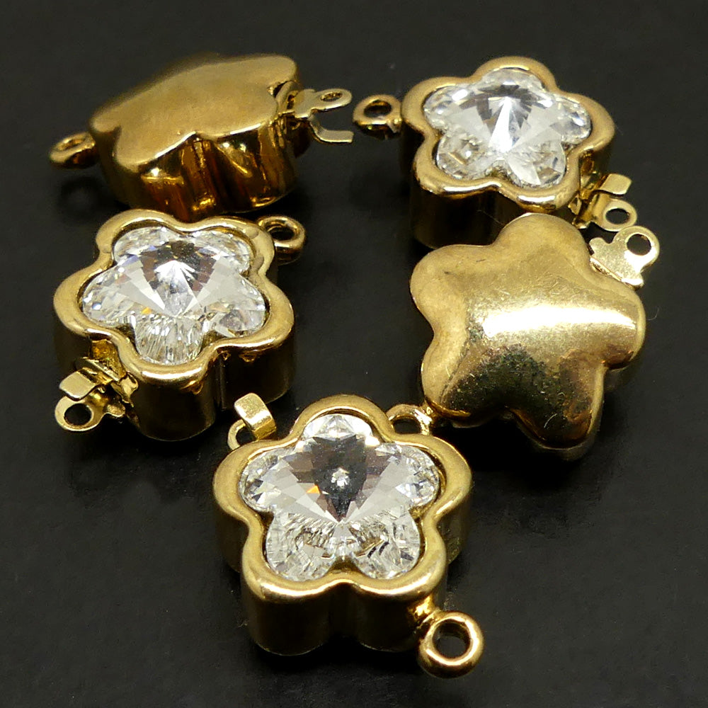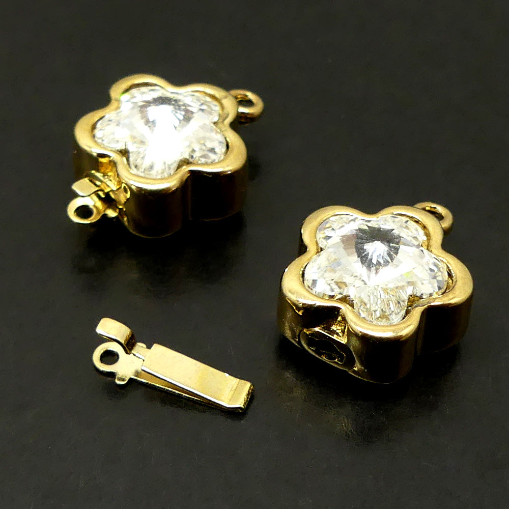 Fermoir - Clip Fleur avec cristal - Doré (1 pce)