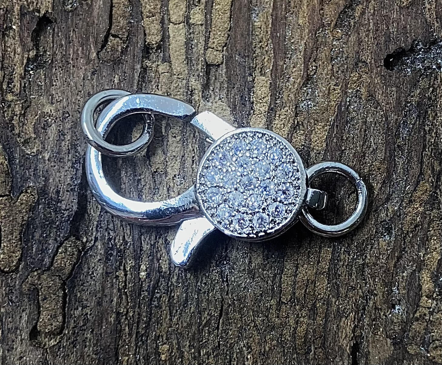 Fermoir mousqueton avec zircons - Argenté (1 pce)