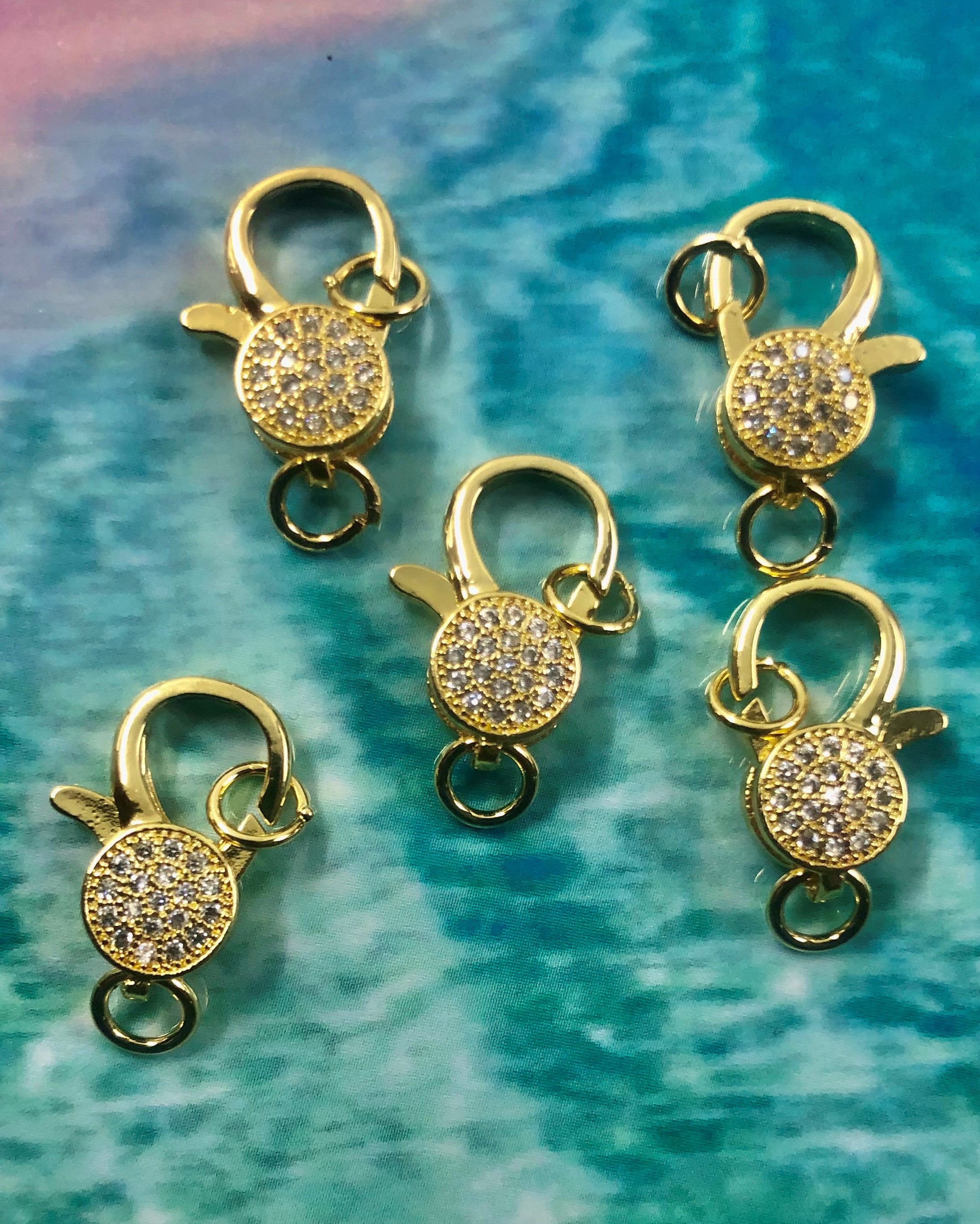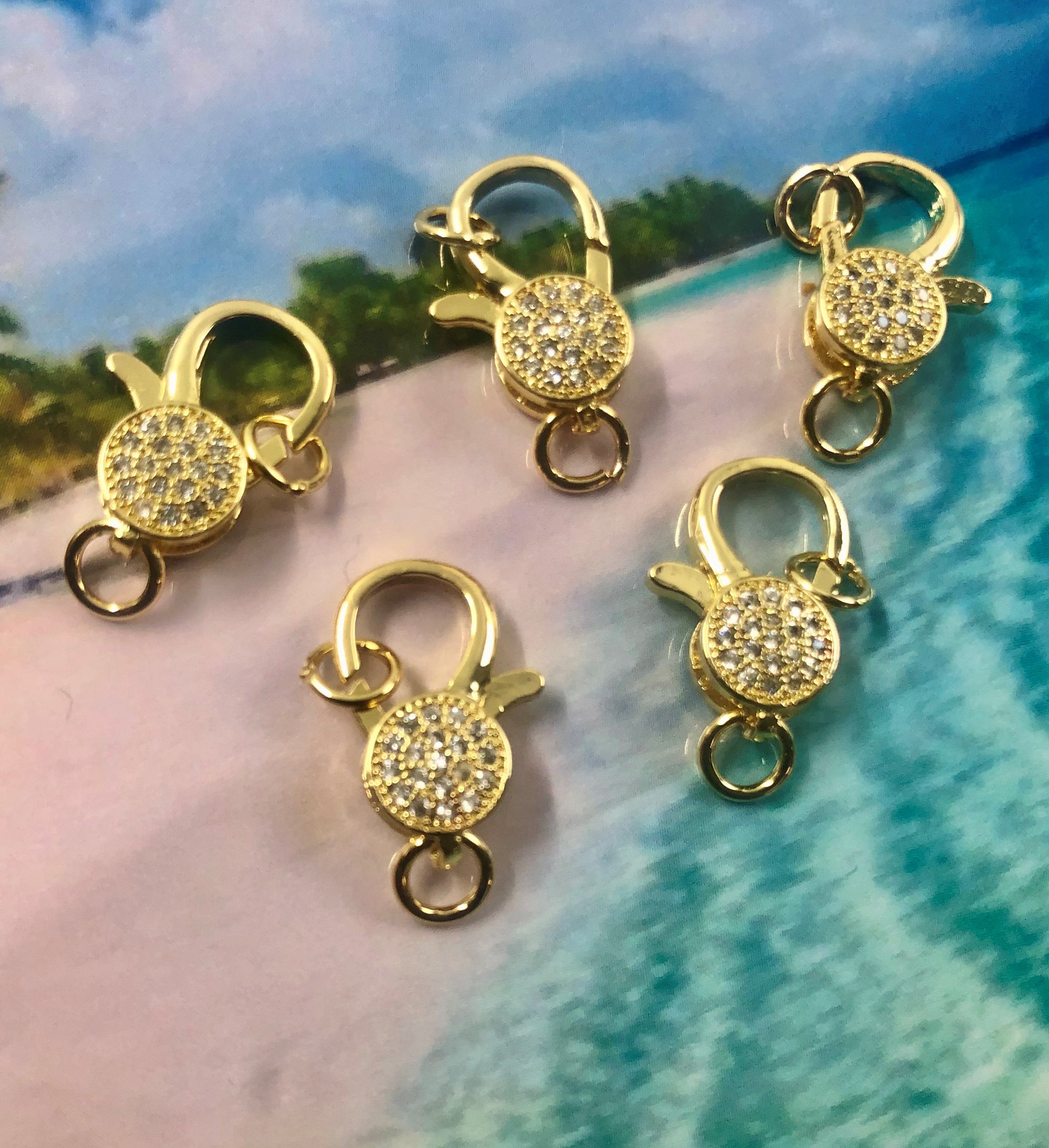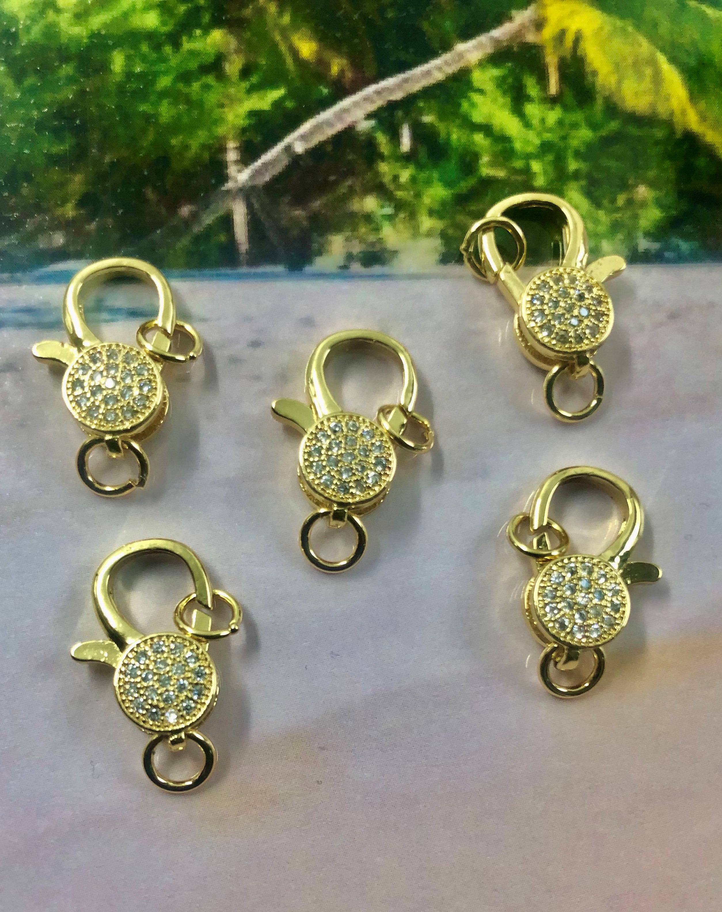 Fermoir - Mousquetons avec zircons - Or (1 pce)
