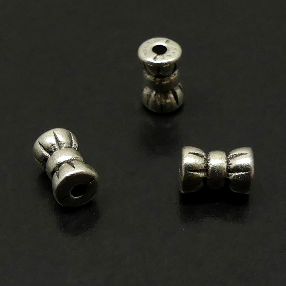 Perle bobine, métal argenté, 6x4 mm, trou 1mm