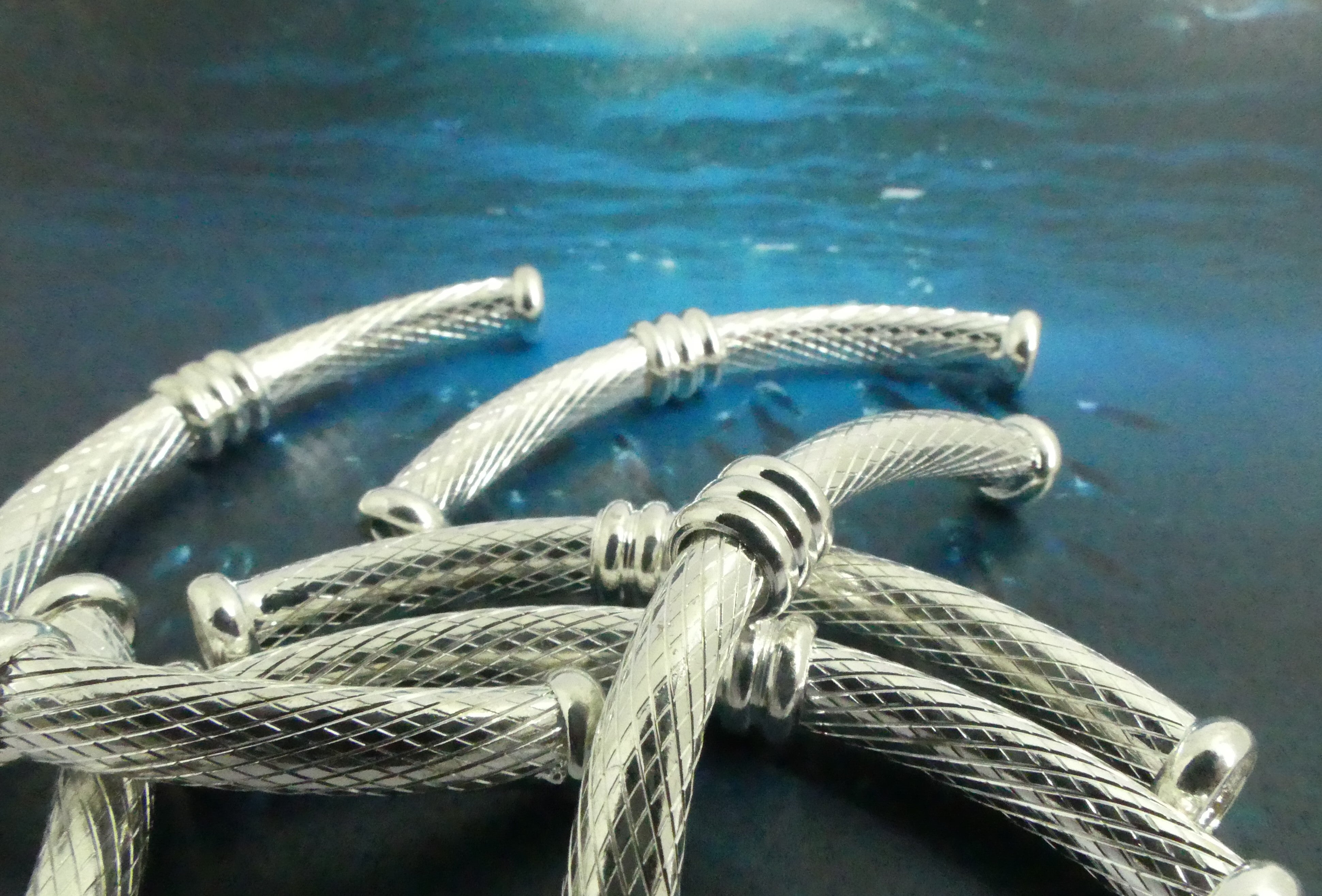 Tube en laiton argenté avec surface striée et boucles