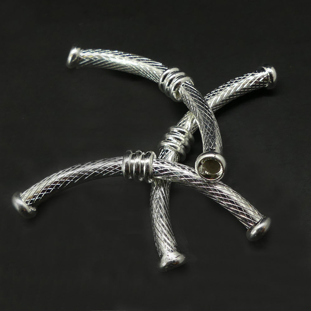 Tube courbé en laiton argenté orné (2 pces)