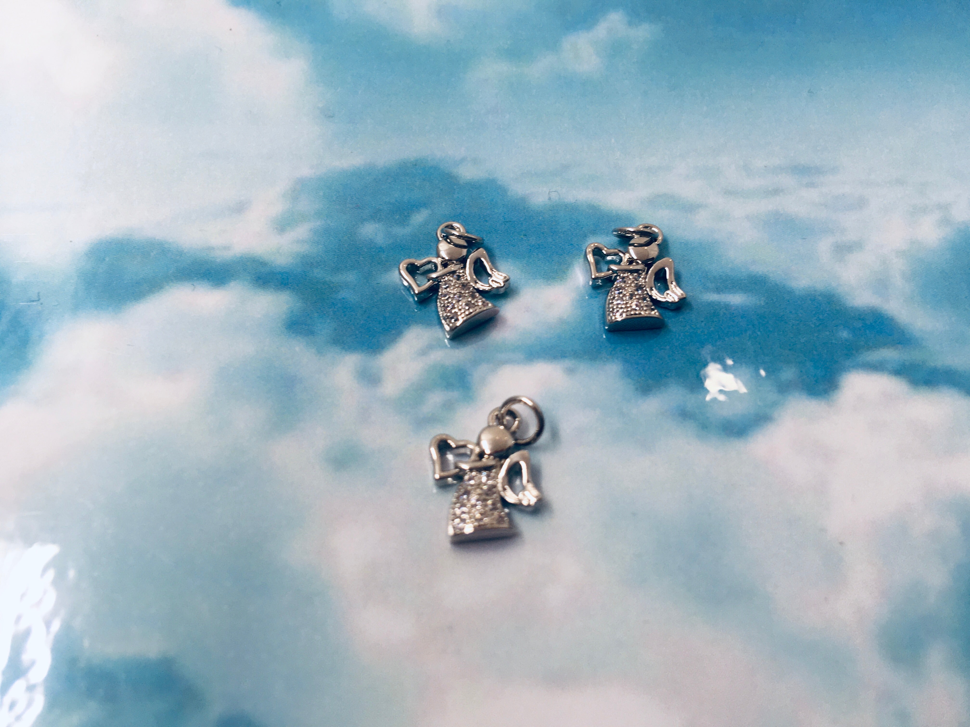 Breloque en laiton, petit ange argenté avec zircons