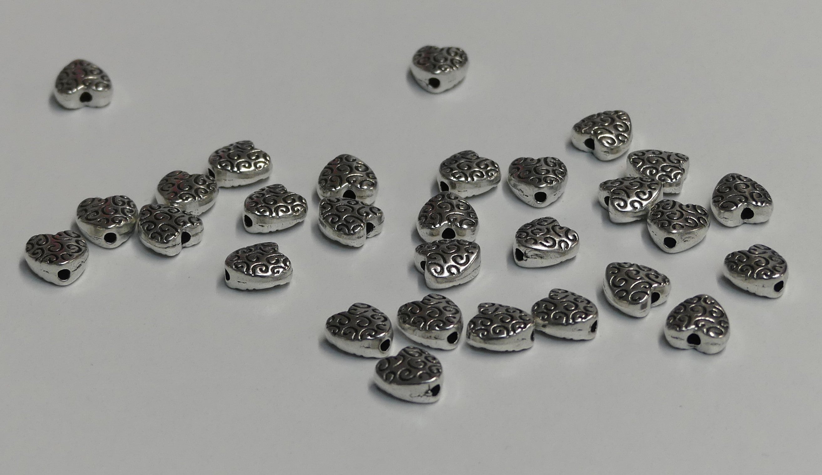 Perle en alliage de style tibétain, cœur, couleur argent antique (10 pces)