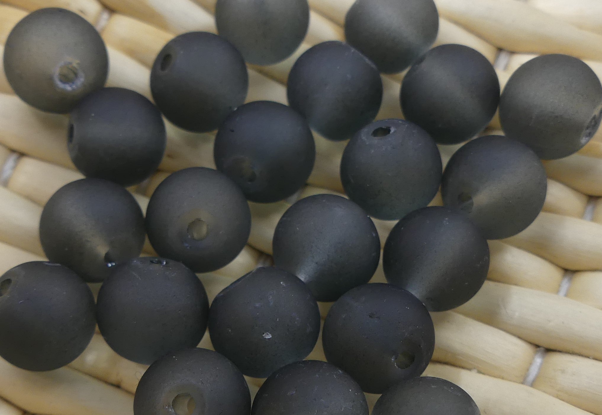 Perle de verre ronde givrée transparente 8 - Gris (10pces)